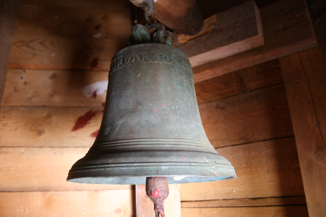 Í kirkjunni eru tvær klukkur. Önnur þeirra, sú minni, er merkt Torsteiren Thordarson Anno 1691 en hin, sú stærri, er ómerkt. Upphaflega virðast báðar klukkurnar hafa verið festar í sama rambaldinn og þannig hringt samtímis þegar togað var í einn kaðal. En nú er minni klukkan fest með járngjörð við rambaldinn en sú stærri er kyrfilega fest enn. Því hefur verið brugðið á það ráð að nota rafmagnsvíra sem festir eru í kólfa klukknanna til þess að hringja þeim. Það gefur hringjara betri stjórn á klukkunum en þó verður að viðurkennast að hljómurinn verður ekki eins fallegur.